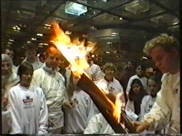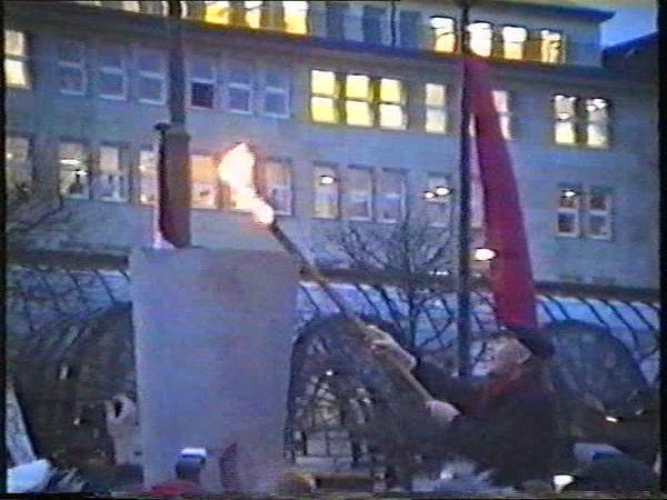 das Olympische Feuer vom damaligen Ersten Bürgermeister Hennig Voscherau auf dem