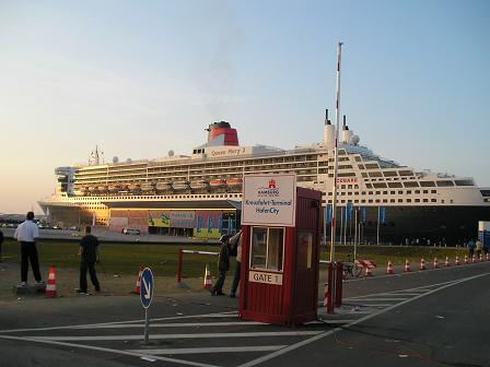 | Die "Queen Mary 2" vom Versmannkai aus | |