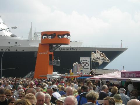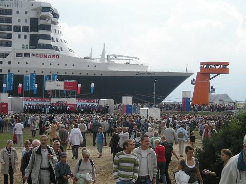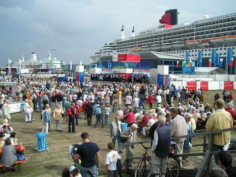 Wie bei dem Besuch der "Queen Mary 2" haben sich wie der tausende Schaulustige versammelt. |