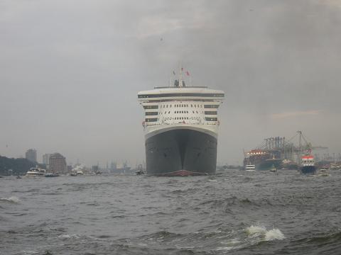 | Die "Queen Mary 2" in voller Pracht auf Höhe Finkenwerder | |