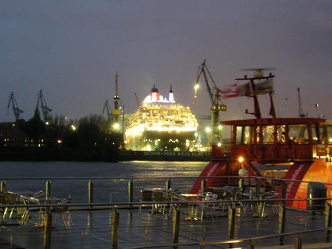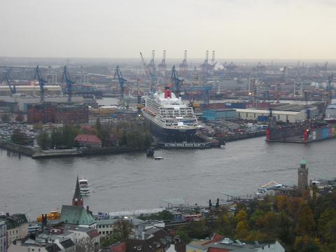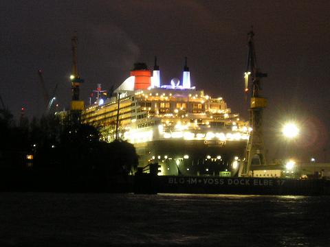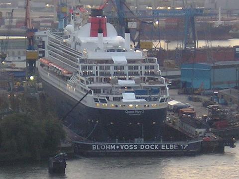 Mary 2" im Dock 17 bei Blohm +Voss. Blick von den Landunsgbrücken.