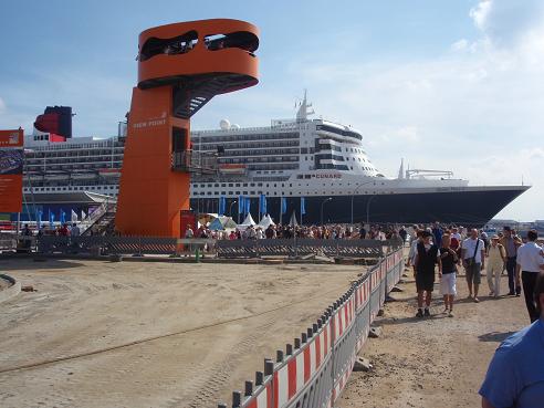 Immerhin oben auf dem View Point war einigermaßen Platz. Unten wurde schon die Party- Stadt für später aufgebaut. |