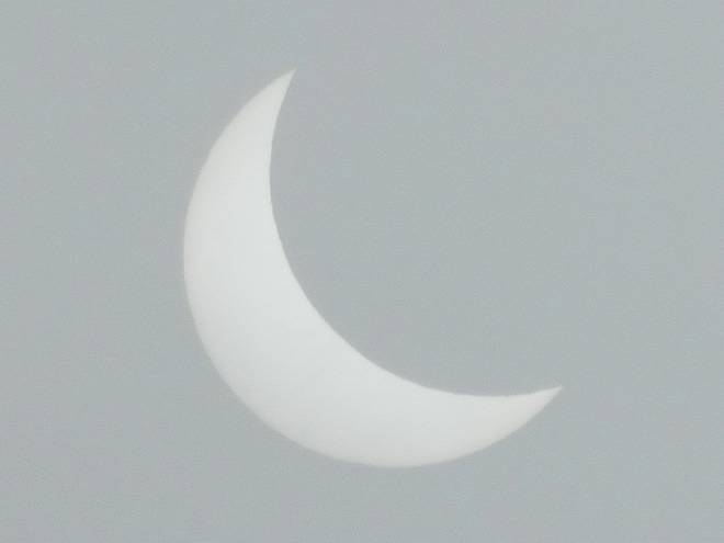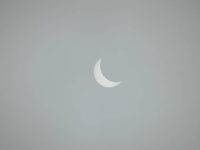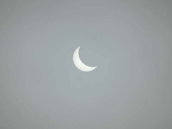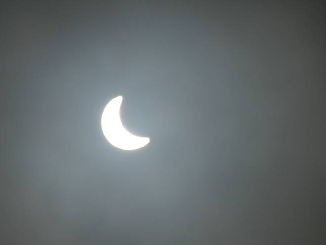10.28 Uhr Das war das letzte Bild, bevor die Sonne nicht nur teilweise hinter dem Mond, sondern auch noch vollständig hinten den Wolken verschwand. |