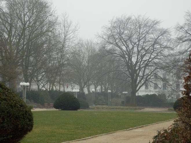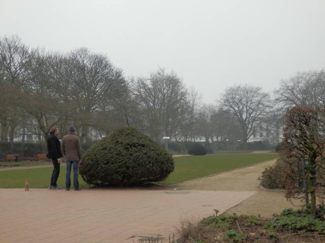 Platz der Republik 10.44 Uhr Nebel im Park. Und keine Sonne zu sehen. Schade. Nun war die maximale Bedeckung über Hamburg erreicht. |