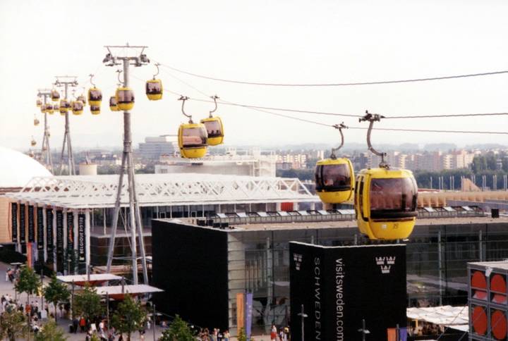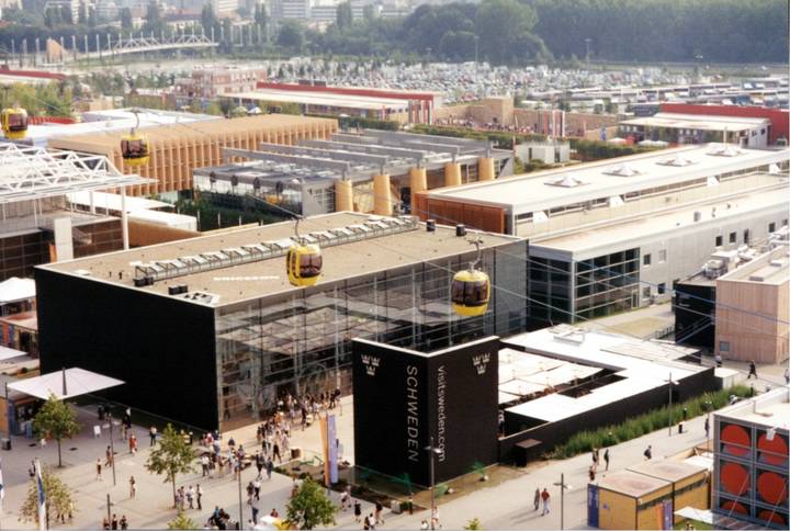 Pavillons Schweden und Belgien, Seilbahn Expo-Gelände Ost (Blick vom Pavillon Niederlande) |