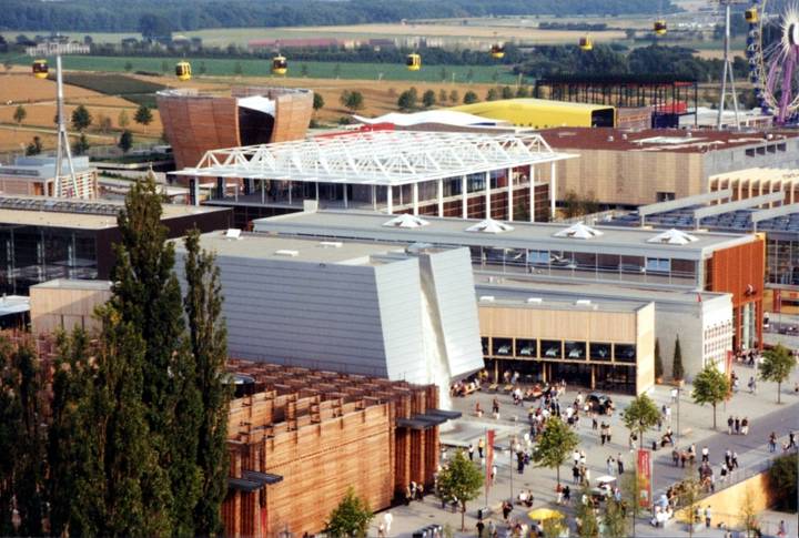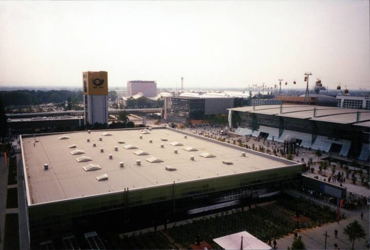 Pavillon Deutschland, Robert-Schumann-Platz, Preussag Arena, EXPO Theater, Disco Fun 2000, Europa Haus Expo-Gelände Ost (Blick von Postbox) |