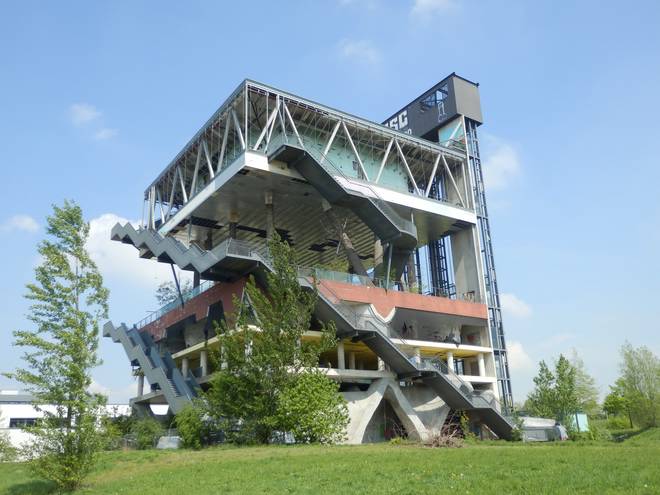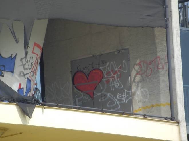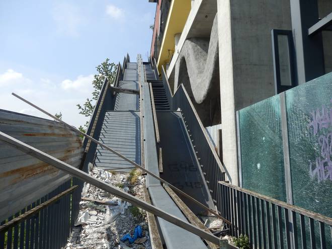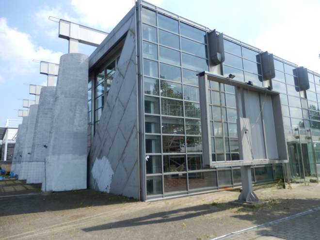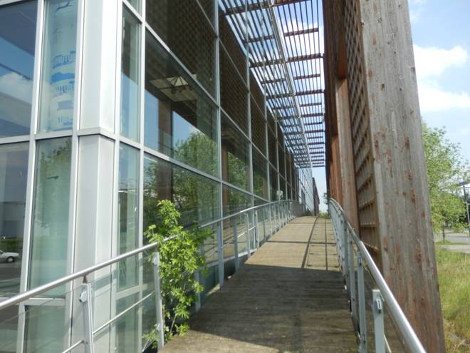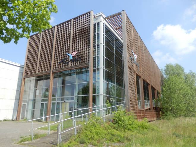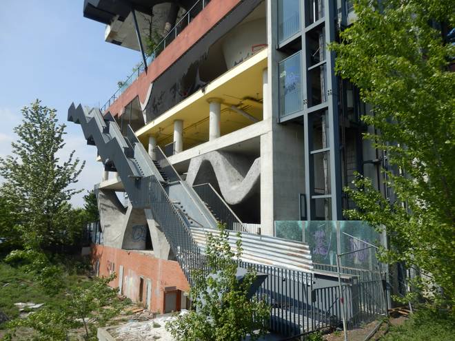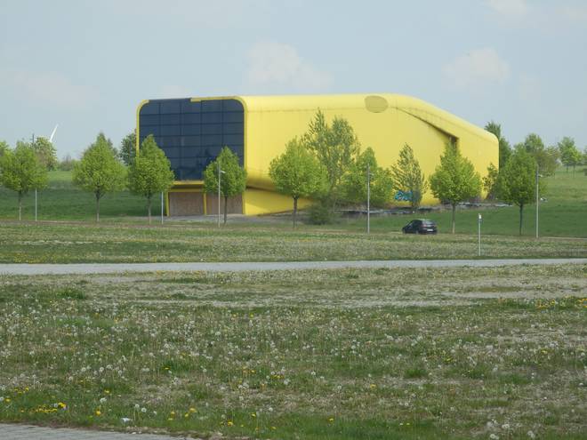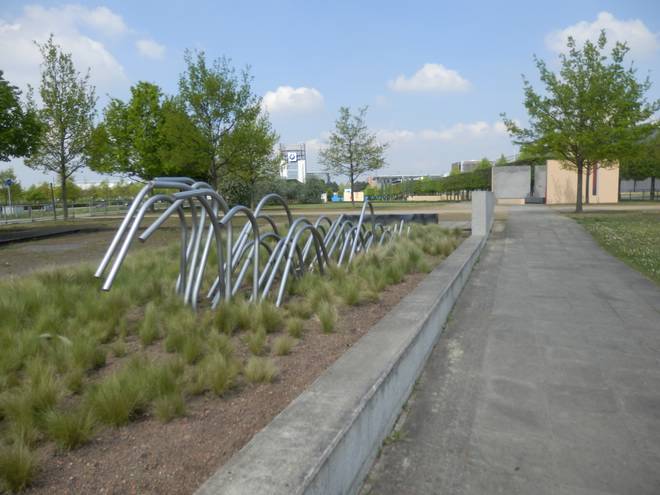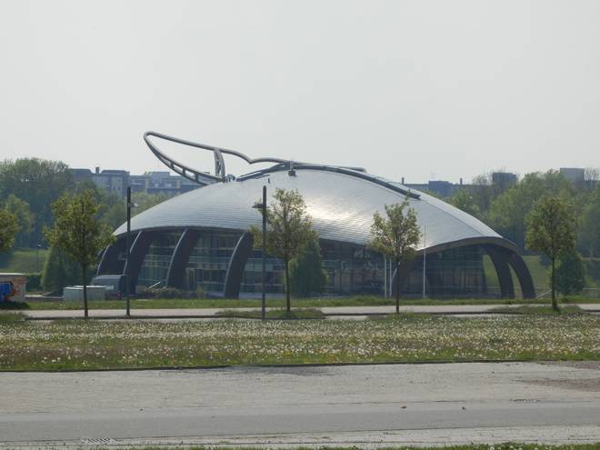 Östlich vom Stadtbahnhof Messe/Ost Das gehörte weder damals noch heute zum Geländer der EXPO, weckte aber Erinnerungen an den Pavillon Niederlande. :-) |