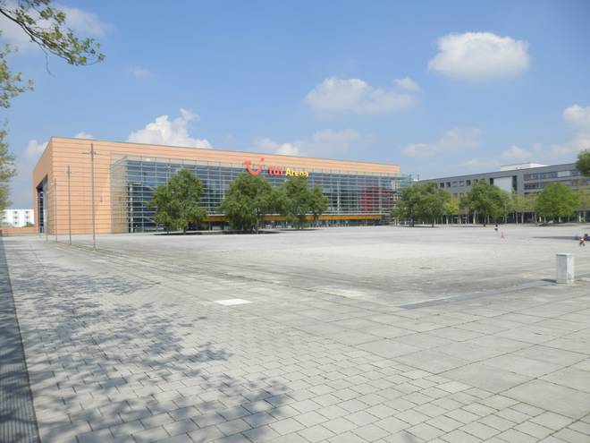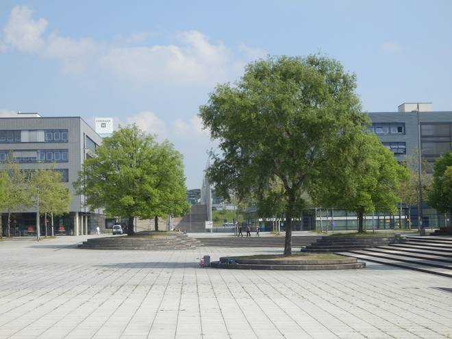 Platz vor dem Stadtbahnhof Messe/Ost (ehemaliger Eingang Ost) |