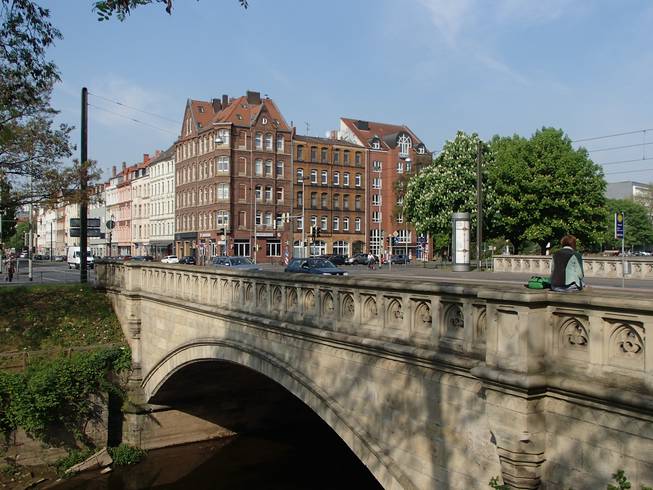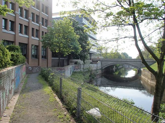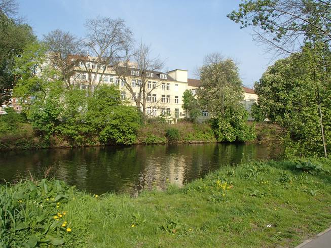 Ihme / Beuermannstraße Hannover liegt ja an der Leine, aber der hübsche Fluß hier ist die Ihme. Die Leine kommt erst später dazu. |