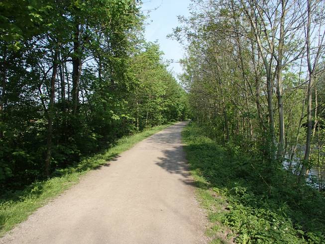 Karl-Thiele-Weg Weiter ging es auf einem Damm zwischen dem Maschsee (rechts) und der Leine (links). |