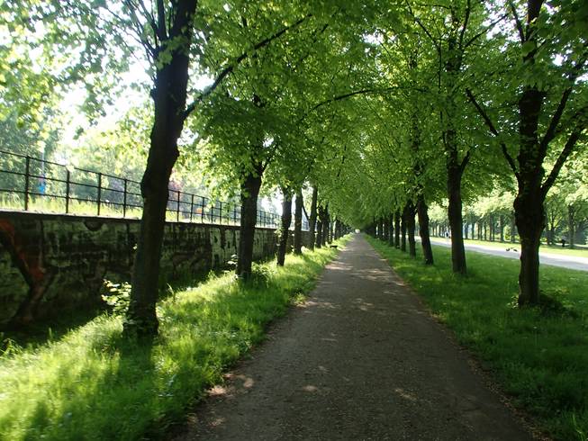 Herrenhäuser Allee Nun ging es zurück in Richtung Innenstadt. Auf der Straße neben dieser Allee würde am Folgetag der Marathon laufen. Das wird dann ca. Kilometer 37. |