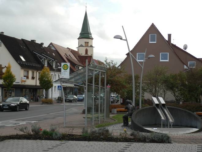 "Euro-Brunnen" (Michael Mayer) "Emoione" (Dario Dall'Olio) St. Verena Kirche Donaueschinger Straße Bahnhofstraße |