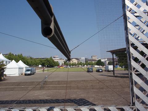 Friedrichsplatz (Blick durch den "Rahmenbau" (Künstlergruppe Haus-Rucker-Co, dokumenta VI, 1977)) |