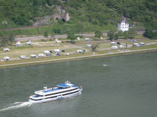 St. Goar / Campingplatz / Eisenbahntunnel / Rhein(Blick vom Loreley-Felsen) |