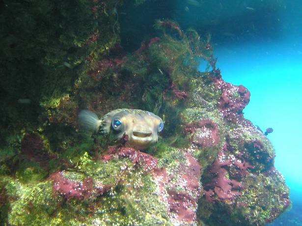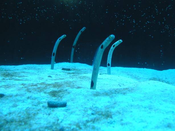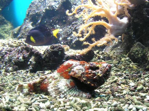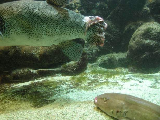 Danmarks Akvarium, Charlottenlund Ob man nun wirklich diese zwei Fische in ein Aquarium packen sollte? (siehe Flosse oben und Maul unten) |