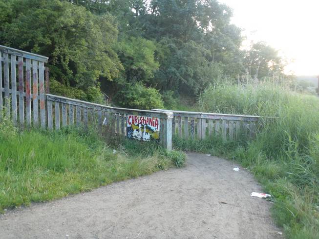 Christiania (Eingang am Stadsgraven) In Christiania sind Fotos eigentlich unerwünscht. Das Schild steht aber erst am Ausgang...). Zu dumm aber auch. |