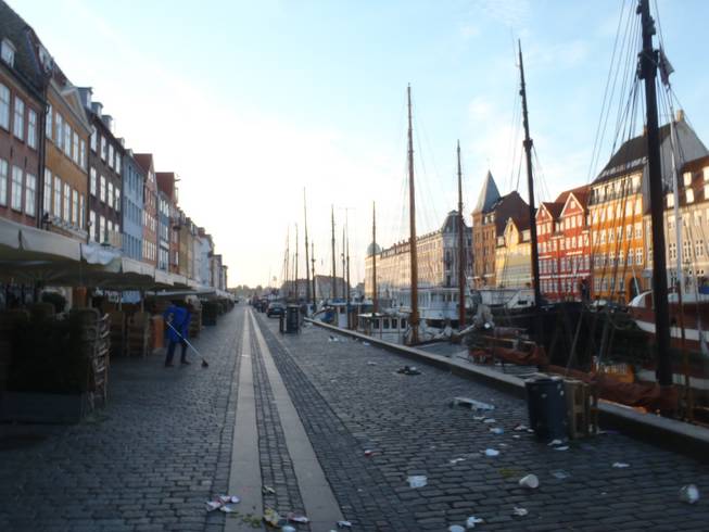 Nyhavn Früh Morgens vor dem Aufräumen kriegt man eine ganze Menge Müll unter die Füße. |
