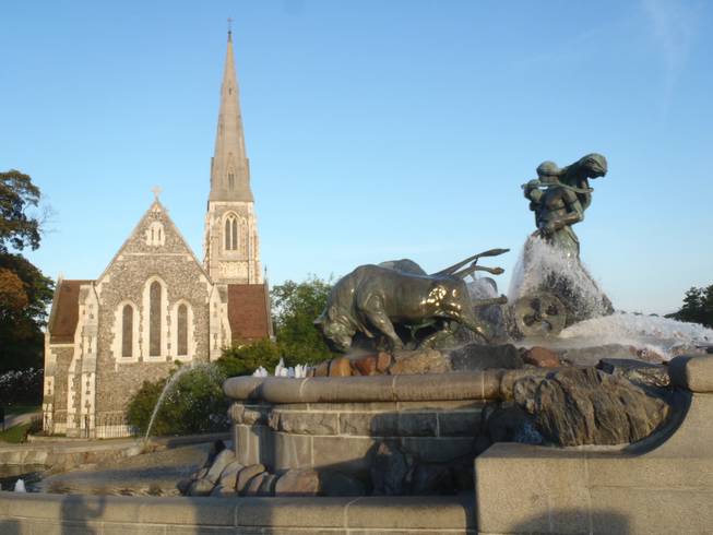 St. Alban's Kirche (English Church) und der Gefion Springbrunnen |