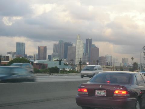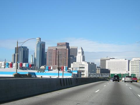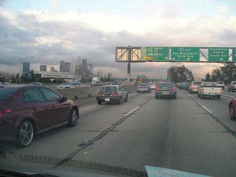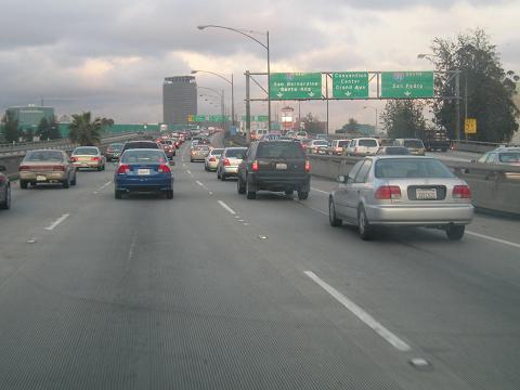 Freeway (California State Route 60) East LA in Richtung Downtown |