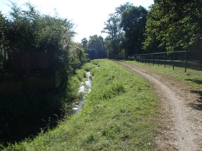 Le Peugue Naja... ein Fluß ist es nicht gerade, aber immerhin schön Grün und etwas Schatten. |