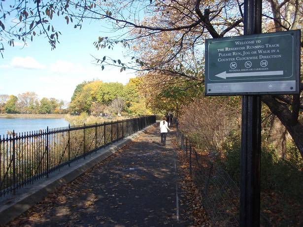 Rundweg Jacqueline Onassis Reservoir Das Schild sollte man (wie jedes noch so schwachsinnige Schild in New York) ernst nehmen und nur gegen den Uhrzeigersinn Laufen, Joggen oder gehen. |