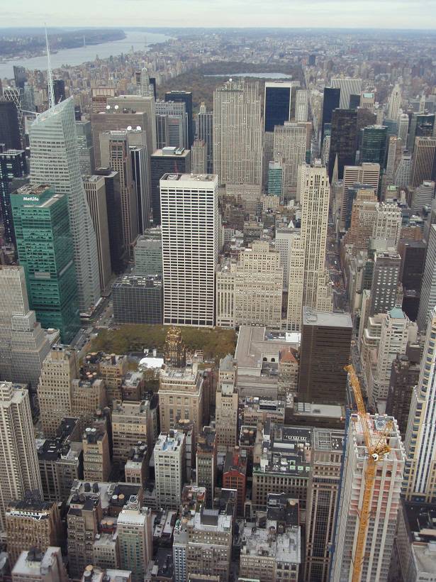 Blick Nord-Nord-Ost: Bank of America Tower / Hudson River / Upper West Side / Central Park / Rockefeller Center / Trump Tower / 5th Avenue / Bryant Park / New York Public Library |