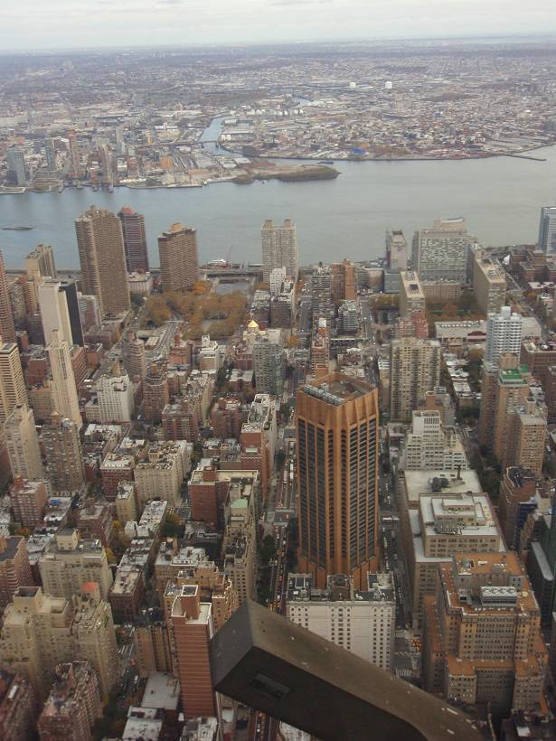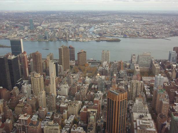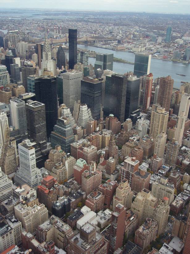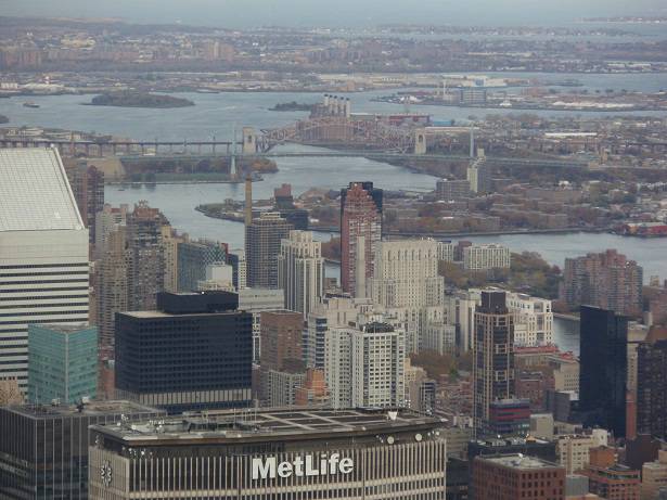 Blick Nord-Ost: CityCorp Center / Met Life Building / Hell Gate Bridge / East River / Queens |