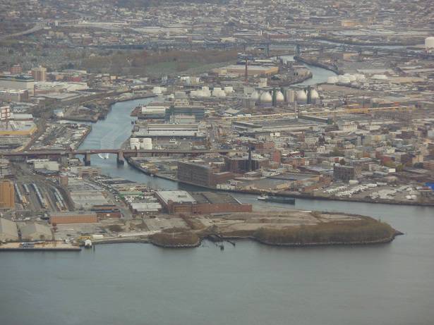Blick Süd-Ost: Mündung Newton Creek/East River / Pulaski Bridge / Queens |