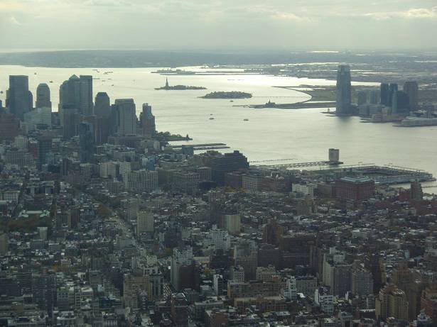 Blick Süd-West: Downtown manhattan / Upper Bay / Liberty Island / Hudson River / Greenwich Village / 30 Hudson Street (New Jersey) |
