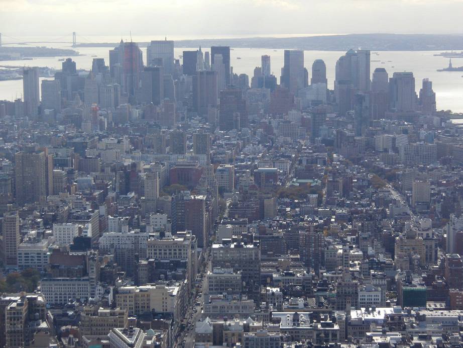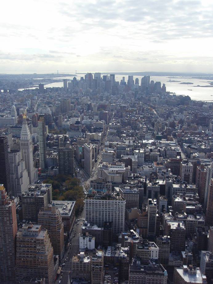 Blick Süd-Süd-West: Brooklyn / Verrazano Narrows Bridge / The Narrows / Upper Bay / Downtown Manhattan / China Town / Little Italy / Soho / Greenwich Village / Gramercy / New York Life Building / The metropolitan Life Tower / Madison Square Park / Flatiron Building |