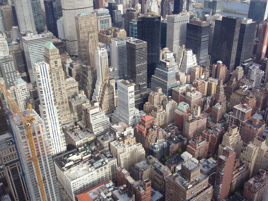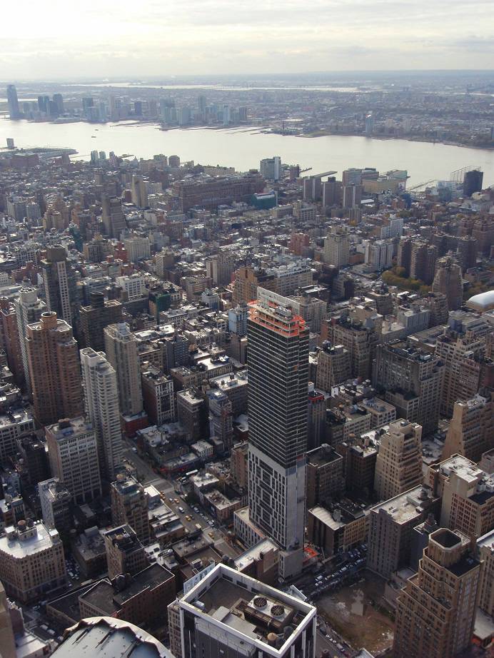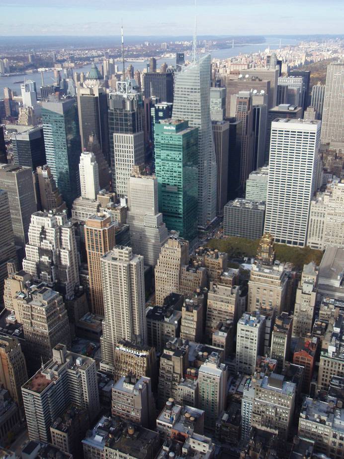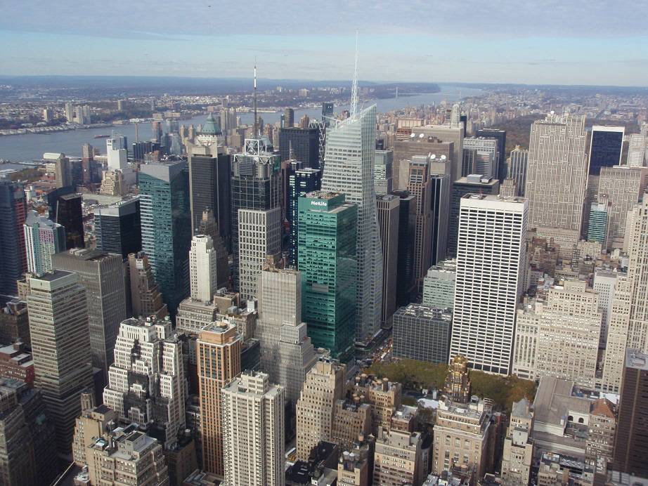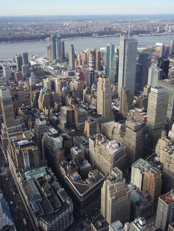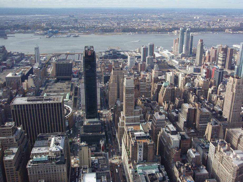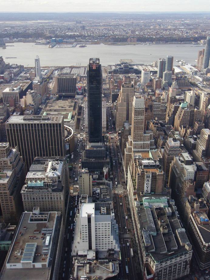 Blick Nord: New York Times Building / World Wide Plaza / 4 Time Square / Bank of America Tower / Upper West Side / Central Park / Hudson River / George Washington Bridge / New Jersey |