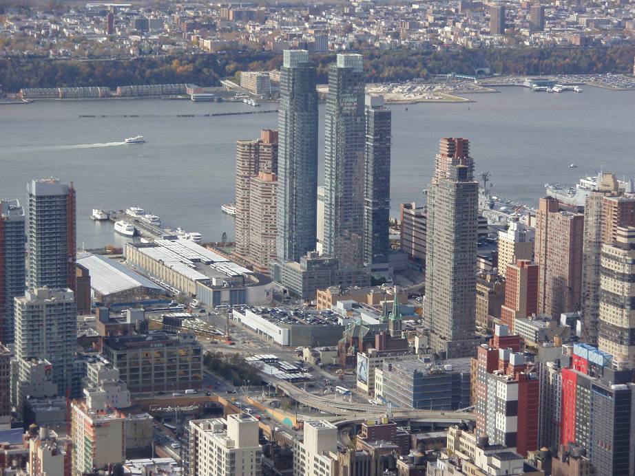 Blick Nord-West: Silver Towers / Pier 81 / Hudson River / New Jersey |