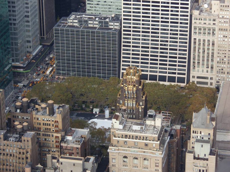 Blick Nord: Bryant Park / Bryant Park Hotel / 6thz Avenue / West 42nd Street |