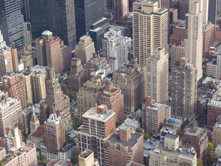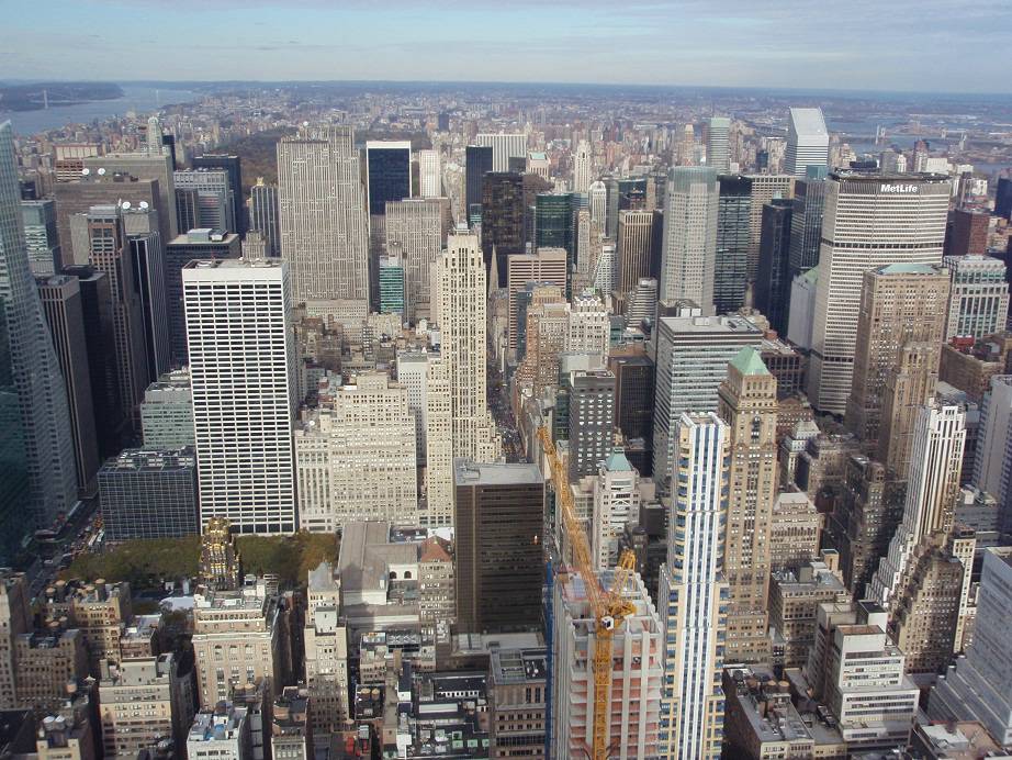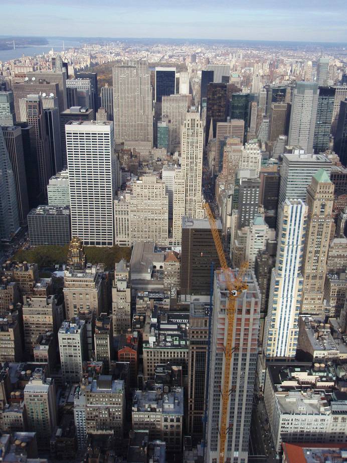 Blick Nord-Nord-Ost: Hudson River / Upper West Side / Central Park / 500 5th Avenue / Rockefeller Center / Mercantile Building / CityCorp Center / Met Life Building / East River |