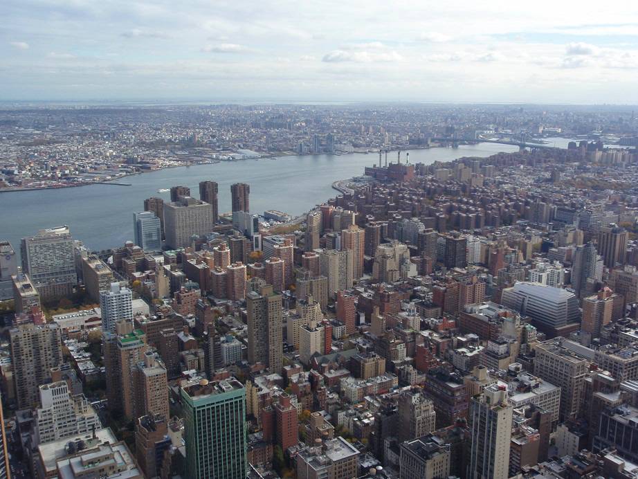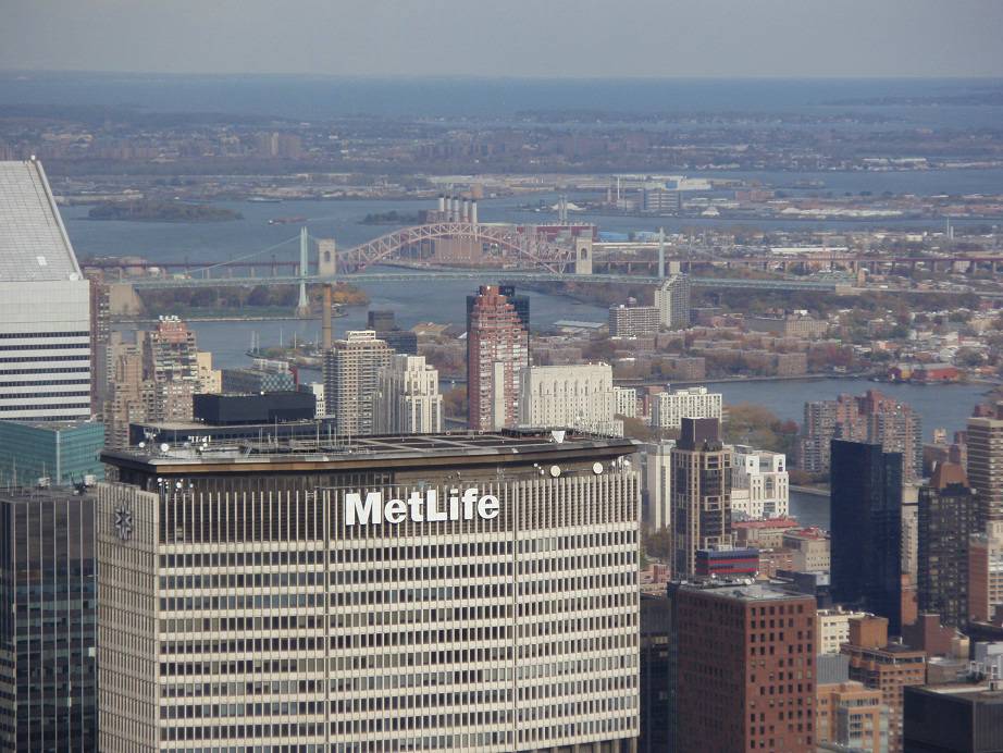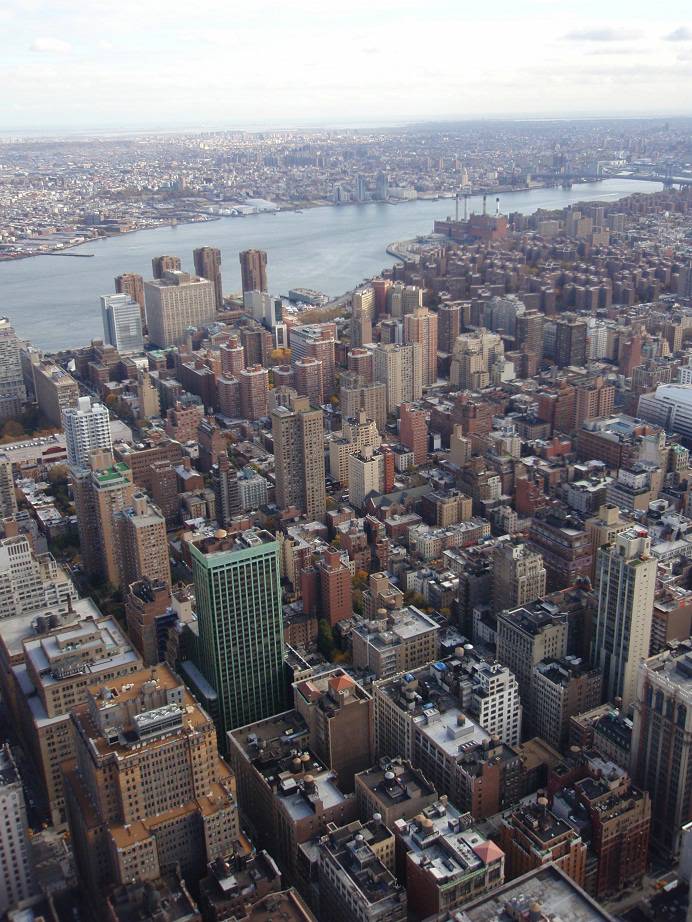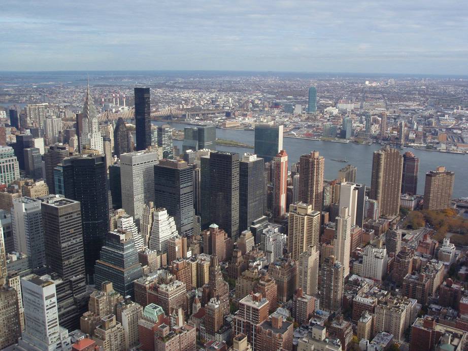 Blick Nord-Ost: CityCorp Center / Met Life Building / Hell Gate Bridge / East River / Queens |