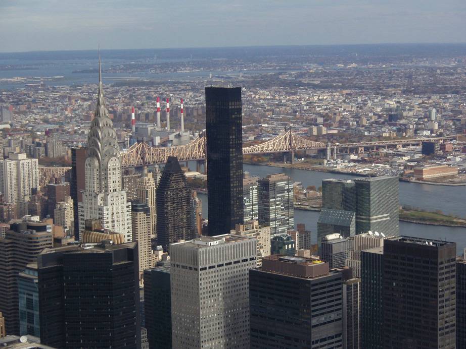 Blick Ost: Chrysler Building / Queensboro Bridge / Trump World Tower / United Nations Headquarter / The Corinthian / East River / CitiCorp Building / Queens |