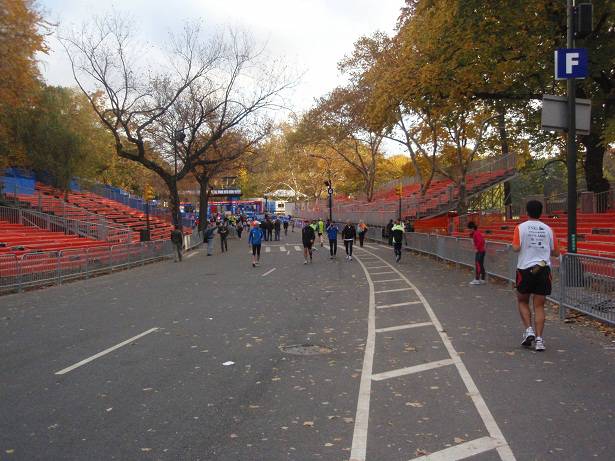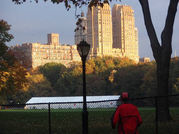 West Drive / Central Park Hier wurden gerade die Tribünen für den New-York-City-Marathon zwei Tage später aufgebaut. Da konnte ich schon einmal Probe laufen. |