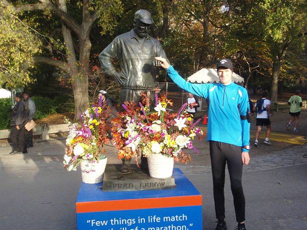 Statue Fred Lebow & Ich "Few things in life match the thrill of a marathon." |