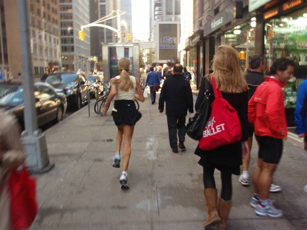 6th Avenue / West 55th Street Diese athletische Lady kam ganz plötzlich aus einem Haus, raste dann vor mir her und blieb nach kaum 100 Metern stehen. Hmm... |