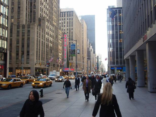6th Avenue / West 52nd Street (Blick auf die Radio City Music Hall) Es waren nicht viele Leute auf der Straße, da konnte man ganz gut durchkommen. |