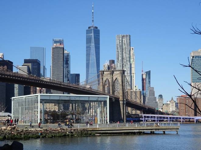 Jane's Carousel Empire Fulton Ferry Park One World Trade Center 8 Spruce Street Tower Franklin D. Roosevelt East River Drive Civic Center East River |