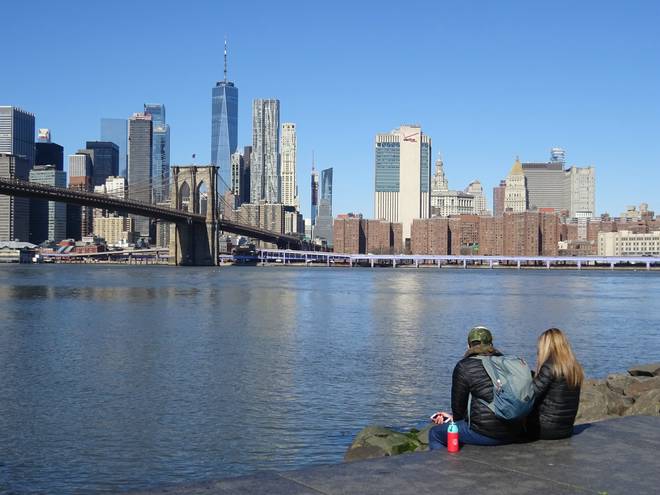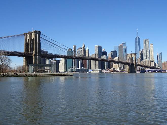 Brooklyn Bridge Empire Fulton Ferry Park Lower Manhattan East River |
