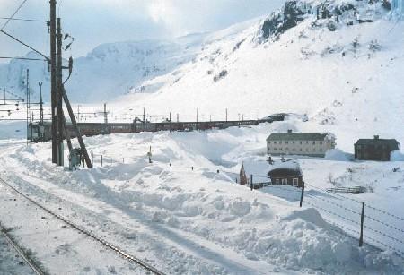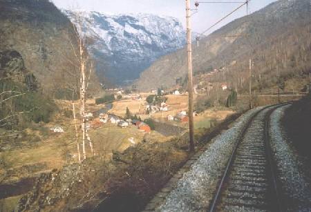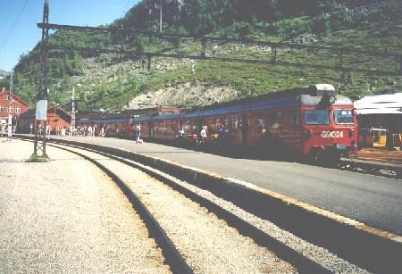 Zug aus Richtung Bergen (Bahnhof Myrdal) |