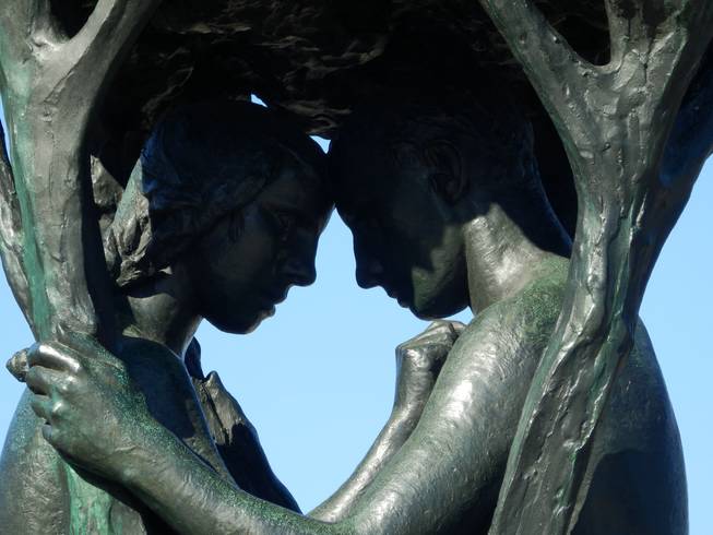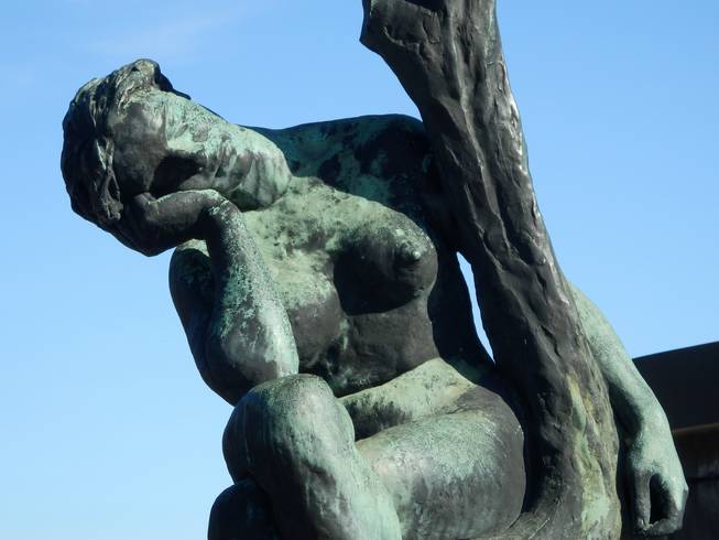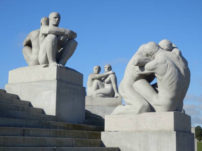 Livshjulet, 1933-1934. Bronse Soluret, 1930 Ung mann og kvinne sitter rygg mot rygg, 1919. Granitt |