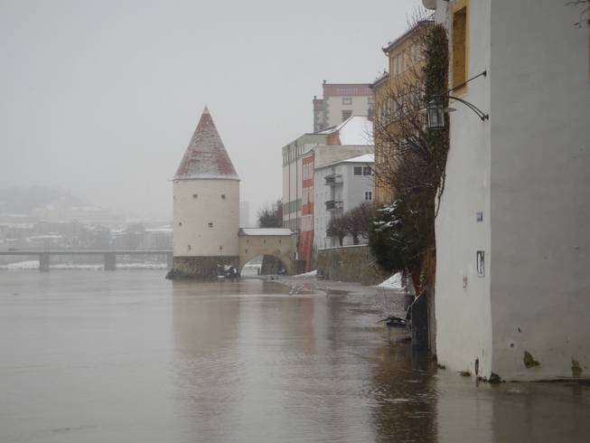 Schaiblingsturm / Innkai / Hochwasser am Inn |