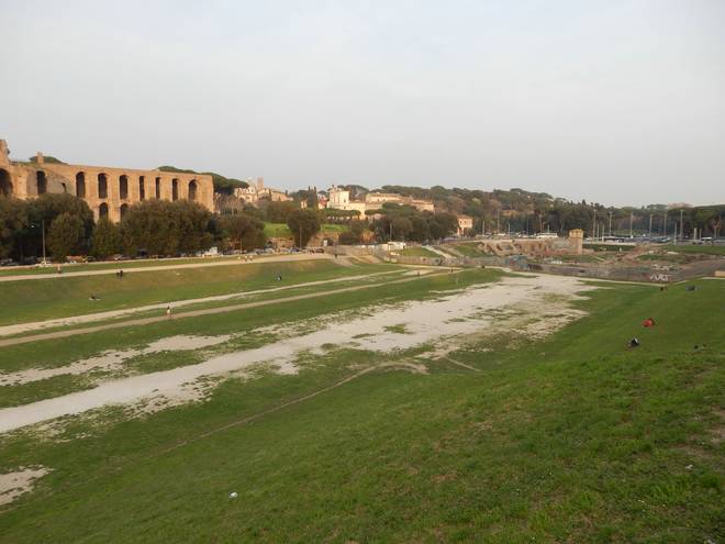 Veduta del Circo / Via dei Cerchi / Aventino / Torre della Moletta / Tribuna Sud / Via dei Circo Massimo / Circo Massimo |