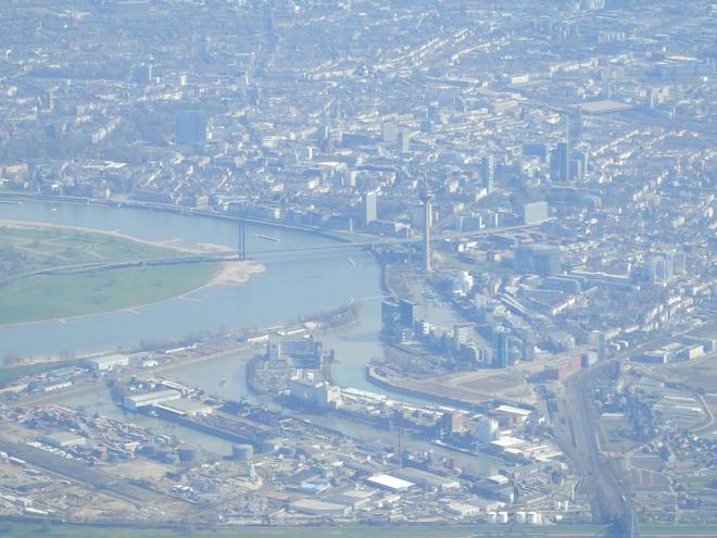 20. März 2014 11.36 Uhr Theodor-Heuss-Brücke / Oberkassler Brücke / Rheinkniebrücke / Medienhafen / Hafen Düsseldorf / Ölgangsinsel / Düssel / Rhein / Düsseldorf |