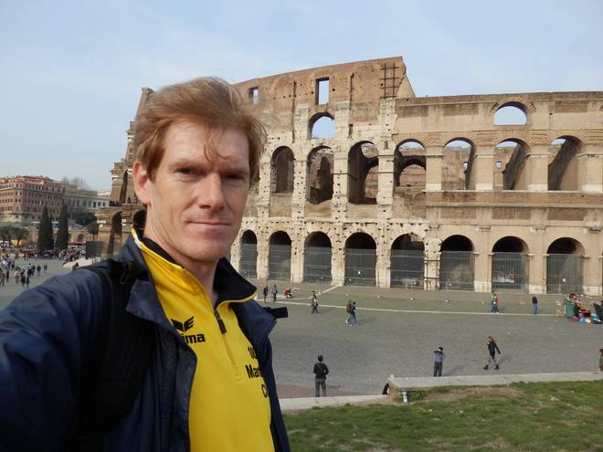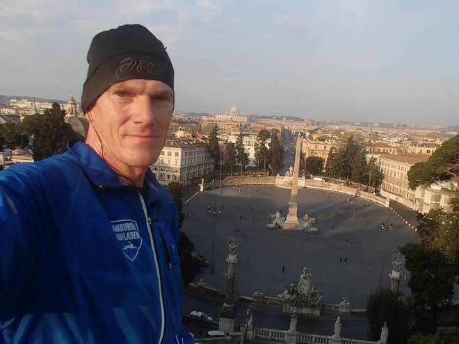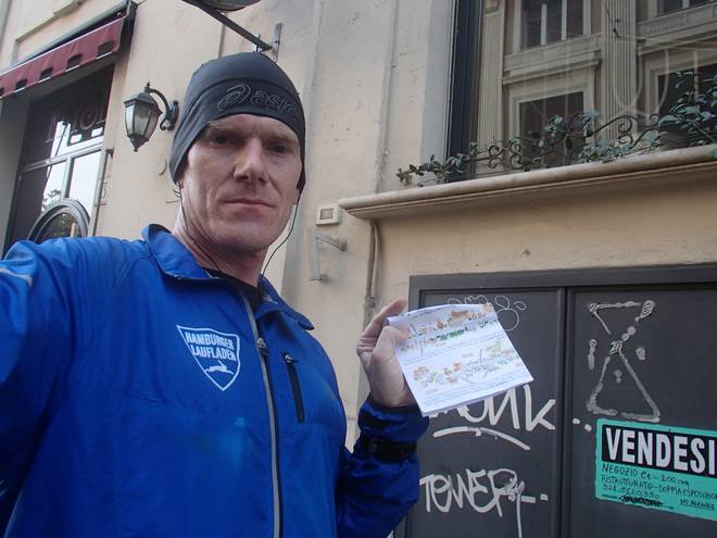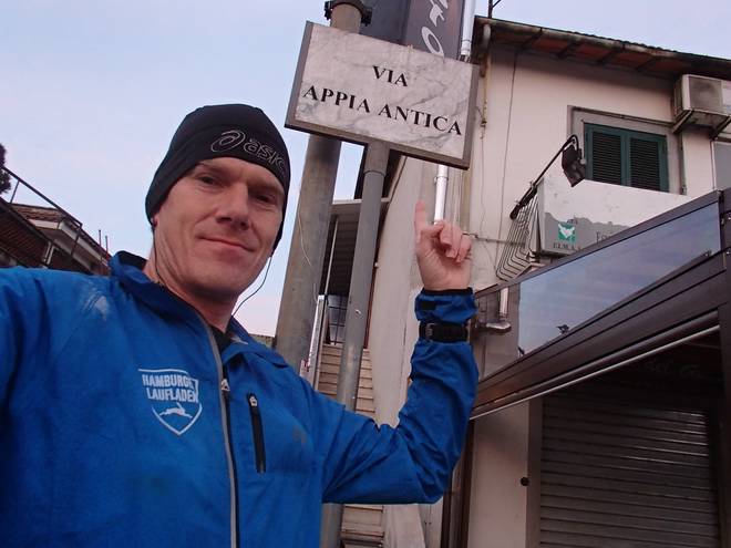 21. März 2014 08.08 Uhr Via Cairoli Nach dem Lauf auf der Via Appia Antica von Frattocchie nach Rom. |