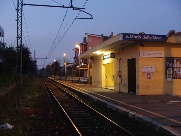 Viale delle Repubblica / San Maria delle Mole 5.54 Uhr Der Zug war geringfügig länger als der Bahnsteig. |