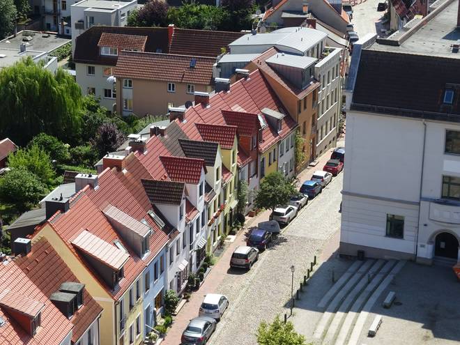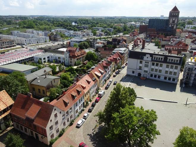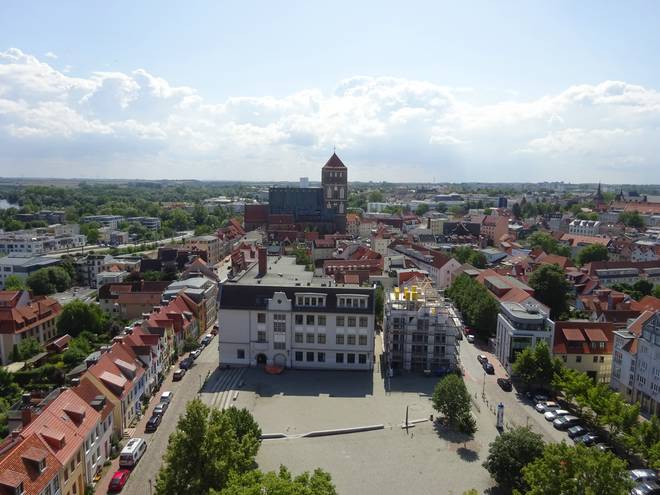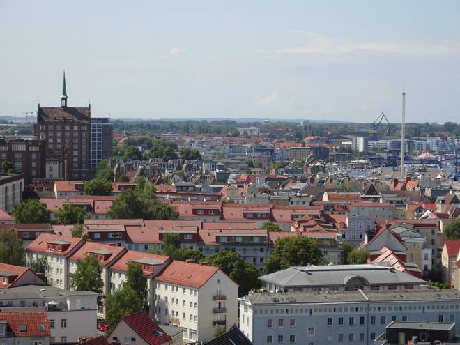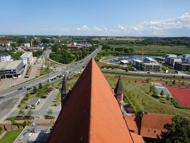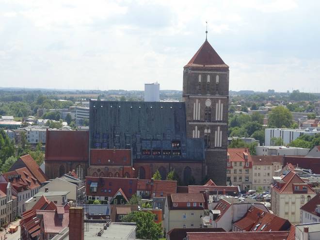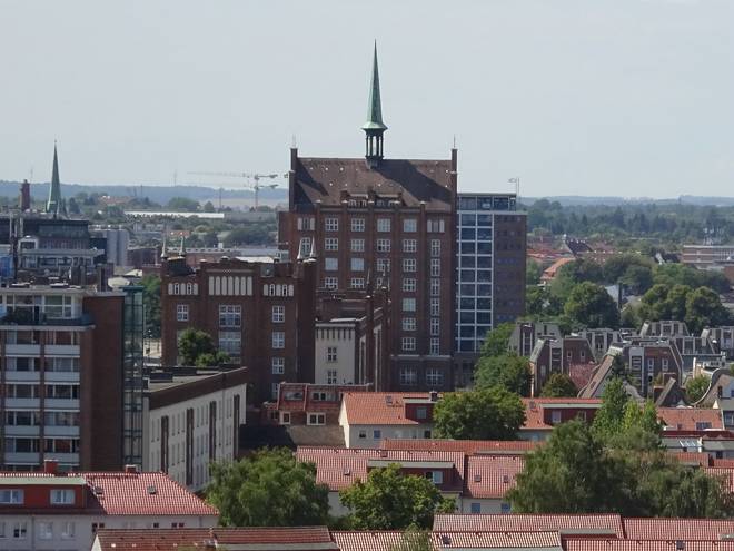 Die Petrikirche ist 116,93 Meter hoch. Die Aussichtsplattform befindet sich in 45 Meter Höhe.